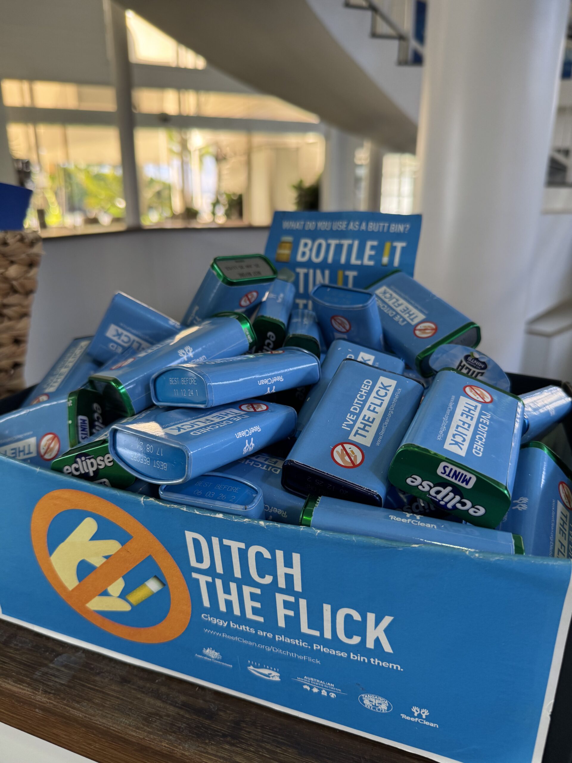 The Ditch the Flick campaign, led by the combined efforts of Tangaroa Blue’s ReefClean program and local partners, has been implemented in several locations, as well as in the heart of Port Douglas, where remarkable progress has been made over recent months to reduce cigarette butt litter in the community.